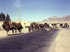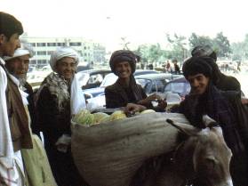 Considering his near death experience, he then proceeded to check our passports with amazing calmness, before removing the chain to let us through. A few miles down the road there was a building with a compound outside. This was the Islam Qala frontier station. There was a sign outside the office in a number of languages advising us that the frontier would be closing at 2100. We thought our luck was in because it was just before 2100 as we all trooped into the office. The officer started the long process of writing everything down in the ledger. He was just about to stamp my passport when he stopped with his arm in mid-air and put the rubber stamp down. It had just turned 2100 and the border post was now closed for an hour. Nothing we could say would persuade him to stamp the passport and finish the job, so we went across to the hotel that was part of the complex hoping to get something to eat. Although the hotel served meals, the prices were so high that we decided to just have a cup of tea, which tasted horrible. It had a somewhat perfumed flavour about it which we discovered is the way they make it in Afghanistan. While we all sat in the hotel and waited for the frontier to open, another car arrived. It was a rather old black Mercedes being driven by two Pakistani men. They had two Americans as passengers who were only going as far as Herat even though the Pakistanis were going all the way to Kabul. They agreed to give us a lift from Herat to Kabul and we arranged to meet at 7am next day. At 2200 we all went back to the frontier post but it had not yet opened, so we all started singing "why are we waiting". They probably didn't understand what we were singing but they still managed to get the hint and soon opened up. The passport control officer carefully wrote all our details down in a large ledger. One of the questions he asked was, "what is your father's name". Louis, who was feeling in a mischievous mood replied, "Aristotle". Deciding to continue with the joke when I was asked I replied, "Daddy". The officer carefully wrote these names down in the Farsi script, and after stamping our passports we moved on to the customs officer. He entered the details of my camera into my passport just to make sure I didn't sell it while I was in Afghanistan. With all the formalities over and done with, we were now officially in Afghanistan. We got back into the van and headed off along the tarmac road at a fair speed. After travelling through Eastern Iran along the dirt roads it was a pleasure to be back on tarmac roads again. When we had gone about 10 miles from the frontier a police car stopped us. We hadn't seen any other car on the road since the frontier, so just where this police car came from was a mystery. William and Sandra quickly gathered up their hashish, and fearing arrest, threw it out of the window before the car had come to a stop. The policemen walked over to the van and stood one on each side and looked into the van. After what seemed like and eternity one of the policeman started to talk in broken English and asked Robert if he had any hashish. The look of innocence on their faces when all four of them said "no" just had to be seen to be believed. The policeman looked at them sternly, shone their torches into the back of the van and said, "you want to buy some? Cheap!" All four of them then bought some hashish from the police, paying with Iranian rials. I don't know if it was because they wanted some, or if it was out of sheer relief at not being arrested. Hashish is quite legal in Afghanistan and can be bought freely throughout the country. They obviously panicked at being stopped, and I suppose that in their panic some doubt must have crept into their minds as to whether they had got their facts right. I wouldn't be surprised if these two policemen had a good business going and they probably went back down the road afterwards to recover the stuff that was thrown out so that they could sell it to the next tourist car. There was a story going around at the time about the road system in Afghanistan. What little traffic there is consists mainly of trucks and buses with only an occasional car. During the mid 60s the American and Soviet Union foreign aid departments fought a pitched battle along the roads of Afghanistan. Each country built good quality roads between various cities and towns to gain favour. This road building war left Afghanistan with one of the best road systems in the Middle East, to cope with the lowest volume of traffic. About once every 100 km or so there is a toll gate. The tolls collected presumably go towards the maintenance of the road. The total cost of the tolls payable between the Iran and Pakistan borders amount to less than £1 sterling. The American sections were designed for trucks, buses and cars, and were very smooth to drive along. By contrast, the Soviet built sections were not quite as smooth to travel along and were obviously built for heavier things like tanks and troop carriers. No doubt this was a bit of long term planning from the Soviets in preparation for their "invasion" during the 70s Half an hour after being stopped by the police we came across some Germans who had run out of petrol. Robert carried a spare can and sold some of the petrol to them to get them going, charging them well over the odds for the amount he let them have. Approximately 50 km further on they had to pay a toll of 30 Afs. Not having changed any money yet they had to pay in rials. Forty-five minutes later and we arrived in Herat. It was well after midnight and everything was closed for the night. We had trouble finding a hotel and spent over an hour before getting a room in the Hotel Jami for 33 Afs each. It was a lovely room although we were too tired to really appreciate it. The hotel owner agreed to wake us up at 6am in time for our lift. It was freezing cold and we were glad to finally get into bed at 1.30am. Right on time at 6am the hotel staff banged on the do