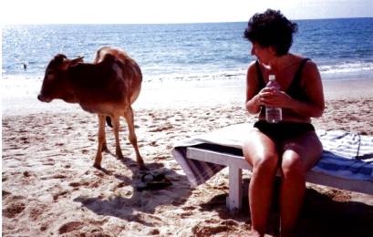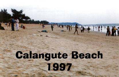 Not only had the town of Calangute changed, but so had the pronounciation of its name. No longer the Portuguese 'Calangutee', but now referred to by the more English 'Calangoot' pronounciation. As I have already said, it is now a busy town with plenty of shops and teeming with people. The half-mile walk from the centre to the beach was now a continuous line of stalls selling all sorts of clothing and souvenirs. The Portuguese villas that used to line the road have now gone and have been replaced with many restaurants serving all cuisines. The Government Tourist Hotel was still there exactly the same as it was 29 years earlier, it even had the same coat of paint. I doubt that it has ever been repainted since it was first opened. This part of the beach is very busy. Because it is the only part where a road reaches the beach there are many Indian tourists paddling in the sea, usually fully clothed except for their shoes and socks. Compared to 1968 the beach is now very busy, but compared to many of the other tourist beaches I have visited in various countries, it is still comparatively deserted.