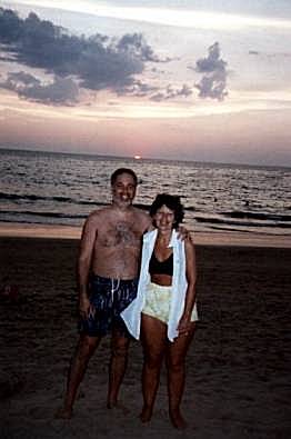 On another day we visited Panjim. On the way we passed the ferry terminal at Betim. I was surprised to find it still going despite the two bridges that now span the mouth of the river. It is now only a passenger ferry and instead of the passengers having to wait for a taxi to eventually arrive, there are now hundreds of taxis waiting for the passengers. We didn't use the ferry, but continued on over one of the parralell bridges over the river. Typical of Indian traffic, instead of having a one way system over the bridges, traffic flows both ways on each bridge. At the side of one of the bridges I saw the rusting hulk of an old landing craft, presumably the old ferry, now beached on the riverbank and abandoned to eventually rot away. By no stretch of the immagination can modern Panjim be described as a sleepy town any longer. The taxi we caught from Calangute spent more than half an hour just looking for a parking place. There are plenty of good quality shops there and my wife bought bags full of costume jewellery at ridiculously cheap prices. She also bought some clothes in the Benneton shop for a quarter of the cost they would be in England. Goa is a long way from England the cost of getting there is not cheap. Yet despite this the cost of living is so cheap that the total cost of our two weeks winter holiday was probably less than we would have spent had we taken a summer holiday in a European resort. All in all, the Goa of 1997 was totally different to the Goa of 1968, but I hadn't really expected it to be anything else. It is still a great place to visit and I will be going back again, only this time I don't intend to leave it for so long. By the way, there is extensive rebuilding work taking place at Dabolim Airport, which should lead to a more efficient service next time I go. Well, maybe not, after all it is India and long may it stay that way. Efficiency is not anywhere near as much fun. FOOTNOTE. My wife and I visited Goa again in January 2002. This time we stayed in the Cidade de Goa Hotel in Vainguinim Beach, which is just outside Panjim to the South. We revisited Calangute to find that tourist development had gone wild in the 5 years since our last visit. The beautiful beach was now a continuous line of sunbeds along its full 5 miles from Candolim to Baga and in the area around Calangute the old Portuguese villas were no longer there and new shops and restaurants in every bit of spare land. Goa has now become a big tourist destination and it was getting bigger still. We have decided to keep Goa as a beautiful memory, but we probably won't be going back again soon. A decision that has been reinforced by the exhorbitantly expensive Indian visa costs.