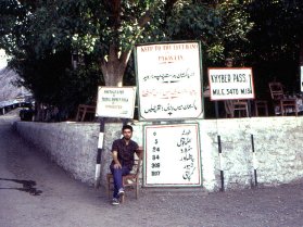 8th November 1968. When Bluey returned with the passports we all climbed aboard the bus for the short ride to the Pakistan side of the border. Here we all had to go through the passport control individually. British passport holders didn't need a visa to enter Pakistan. In 1968 the Australian passport had "British Passport" printed on its cover, so they also didn't need a visa. It wasn't long after this that this wording was removed from the Australian passport as most Aussies used to find it offensive. One of the girls was nearly refused entry to Pakistan because she had "editor" down as her occupation. The immigration official presumed that she was a journalist and became awkward. All journalists, regardless of nationality require a visa and she would have to return to Kabul to get one from the Pakistan Embassy. Fortunately she managed to persuade him that editor meant that she was a proof reader in a printers and had nothing to do with journalism. While we were all being "processed" an American came into the room with a diplomatic passport and went straight to the front of the queue. The immigration officer stopped what he was doing and attended to him immediately. He inspected his passport and pointed out that the Pakistan visa had expired, but stamping the passport and handing it back with a smile he said that he would let him in this time, despite this 'minor' problem. After about an hour and a half we had all passed through immigration and it was now time to move on to customs. This was to take another hour to clear everybody and the bus through. Louis and I had to fill out a form declaring how much money we were bringing in to the country. We made a joint declaration and it looked very impressive. The customs were not at all interested in cameras or watches but made a note of anything that was made of or looked like gold. One of the girls was amazed when the customs officer ignored a diamond ring set in platinum that was worth a fortune and made a big fuss of writing down a detailed description of a cheap imitation gold ring worth only a few dollars As we came out of the customs shed we met the Pakistanis who had given us the lift to Kandahar. They were returning to pay the customs duty on their car, which had been impounded by the customs until it was paid. We noticed a compound full of cars of various nationalities and among the impounded cars were the two mini busses we had seen in Turkey that had been driven by the Afghans. We couldn't understand what they were doing there