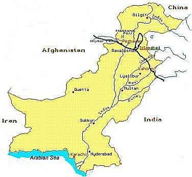An hour after leaving the border we arrived in Peshawar. It was obvious that something was going on because all the streets were lined with flags and decorations. While the bus was driving down one avenue, which was still being decorated, the skylights in the roof caught on the overhead gantries dragging them along. Bluey didn't seem to notice and despite us all shouting to him he carried on for quite a way before stopping. By this time the back half of the bus was festooned with decorations and trailed streamers and two or three hundred Pakistan flags for quite a few yards behind. Two of the gantries and a number of workmen were on top of the bus, the workmen now clinging on for dear life. They had been unfortunate enough to be decorating the gantries as we came sweeping through. Bluey, not being a person to apologise got out of the bus brandishing a large baseball bat, threatening and swearing at the workers as they clambered down from the roof. They quickly took the hint and not stopping to argue, ran off as fast as they could from this maniac foreigner. As a result of this we all had a Pakistan flag to keep and the bus acquired a framed photograph of President Ayub Khan which was proudly mounted above driver as a souvenir. We later found out that the decorations were for a presidential visit the next day. Bluey took us all to a Dak bungalow. This was a place where everybody spent the night together in one large room, sleeping on the floor. We claimed ourselves a space and spread our sleeping bags out, then headed off with some of the Sundowners to find somewhere to eat. Being in Pakistan it was decided that a curry was definitely on the menu for an evening meal. We had no trouble finding somewhere and enjoyed the first of many curries that we would be eating over the next few months. After the meal the crowd of us were heading back to the Dak bungalow when we met some Pakistani lads who invited us back for some tea. The girls didn't want to go back with them so we all went to a tea stand instead where we spent about an hour chatting to them before heading back to the Dak bungalow and to bed. Quite surprisingly I found it confusing to be in a country where the traffic circulated on the left. After having travelled through countries that drove on the right for the last month, I found myself looking the wrong way before crossing the road, apart from feeling strange when travelling in a vehicle on the left side of the road. The next morning everybody was up very early. We were all packed and ready to load our packs onto the bus shortly after 6 am. Bluey had organised breakfast for us all, but what came was definitely not worth the money we had paid. We all had to pay 5½ rupees each for the Dak bungalow, which considering it was just a floor space was also expensive. I rather suspect that somebody was making a bit of profit out of that lot. Bluey had agreed to take us as far as Rawalpindi, or Pindi as they called it in Pakistan. We set out at 7.15 and on the way we crossed the River Indus; the river from which the name